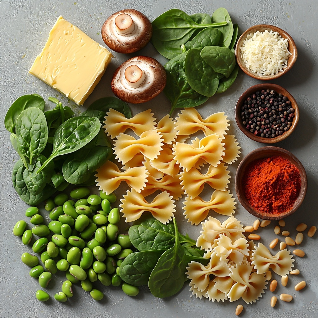 These ingredients come together so effortlessly, each one bringing something special to your salad bowl. From the chewy farfalle pasta’s delightful texture to the fresh pop of spinach and the earthiness of mushrooms, every item here plays a crucial role in creating that perfect balance of flavors and colors.